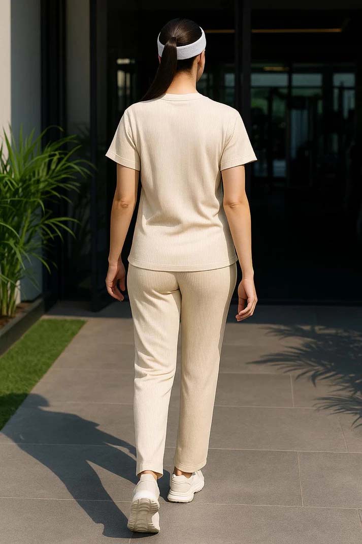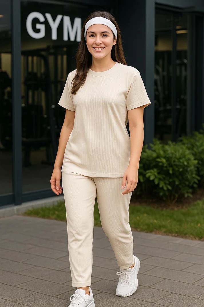 The outfit shown in the images are comfortable, casual activewear sets, ideal for gym workouts, walking, or athleisure wear. Here's a detailed description: