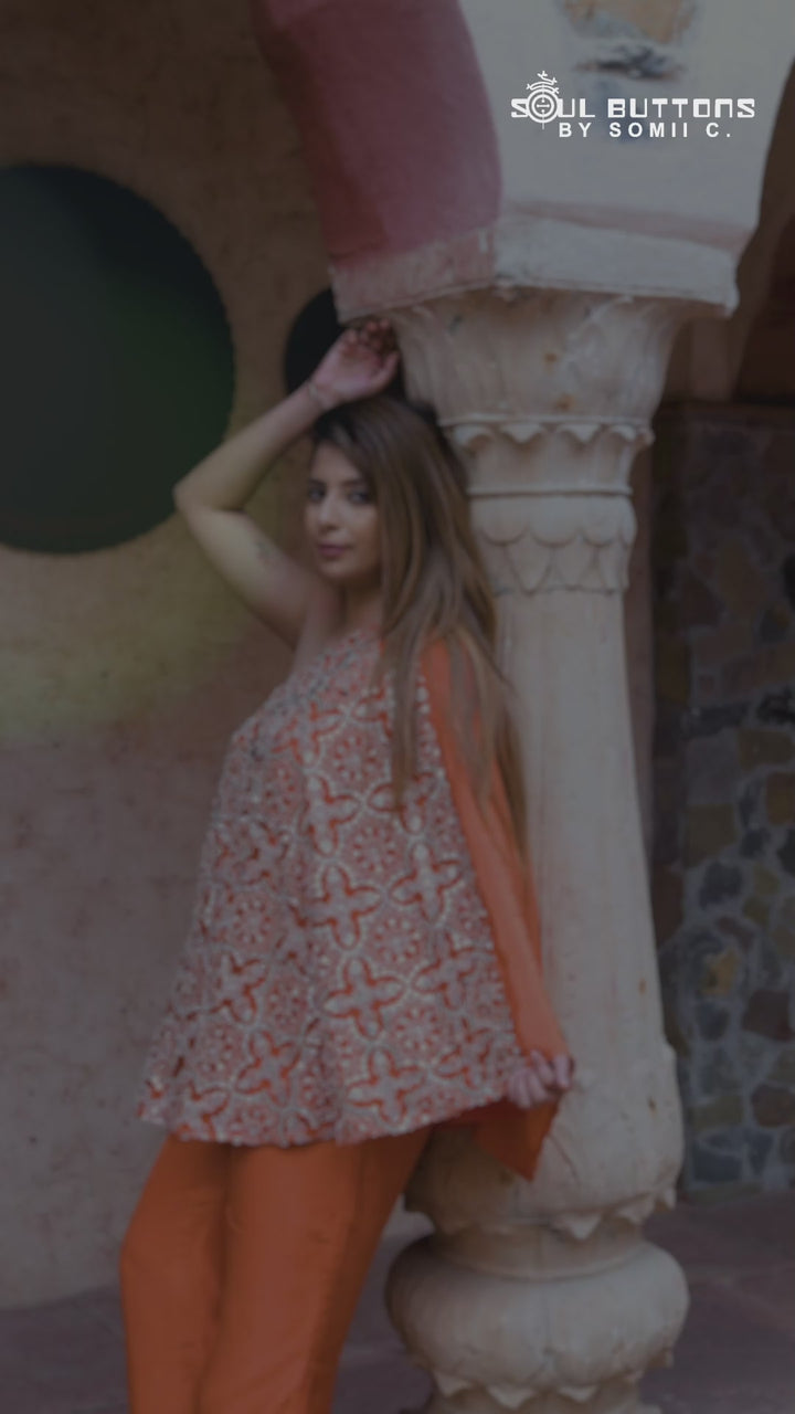 Bring the vibrance of festivities alive with the Tangerine Glow Co-ord Set. This ensemble pairs a flowy asymmetric one-shoulder top with shimmering hand-done mirror-style embroidery on the front, contrasted with a dramatic plain crepe back cape. Styled with matching wide-leg crepe pants, this co-ord strikes the perfect balance between ethnic richness and contemporary flair. A festive wardrobe essential for the woman who loves bold colors and statement silhouettes.