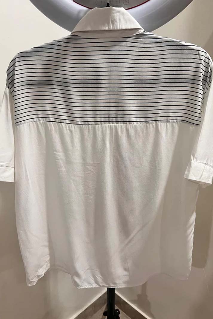 Crafted from breathable, lightweight cotton fabric, it’s your go-to for off-duty errands, casual Fridays, or weekend brunches. Pair it with dark denim or linen trousers to complete your relaxed-chic ensemble.