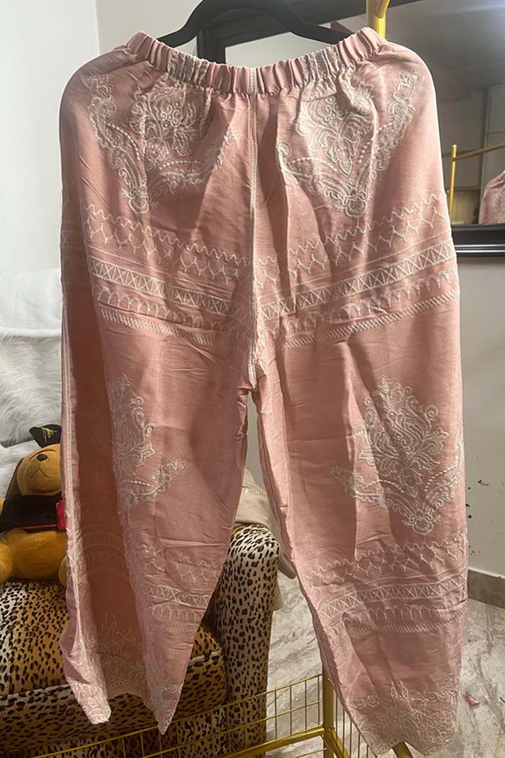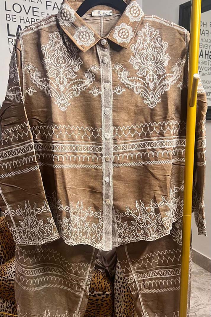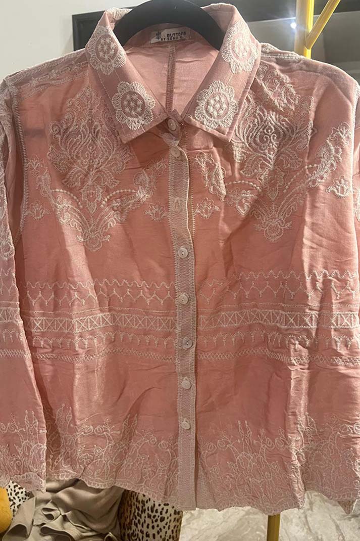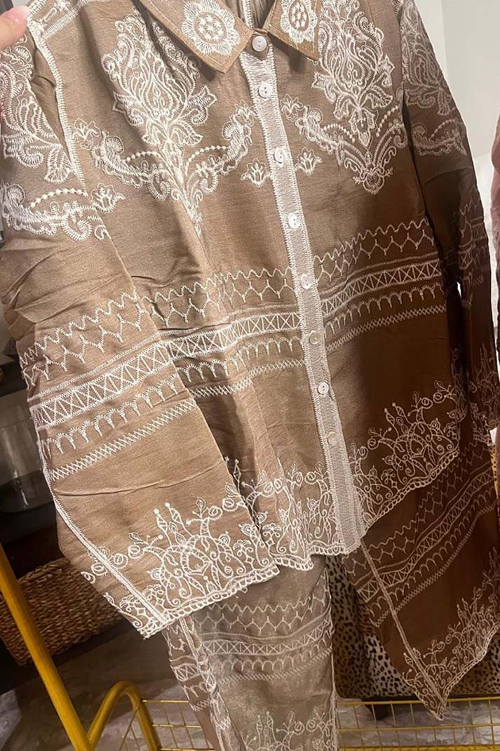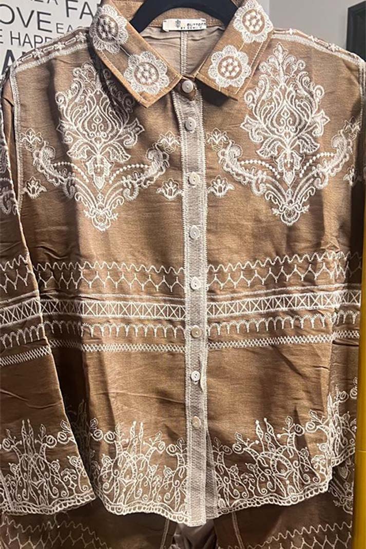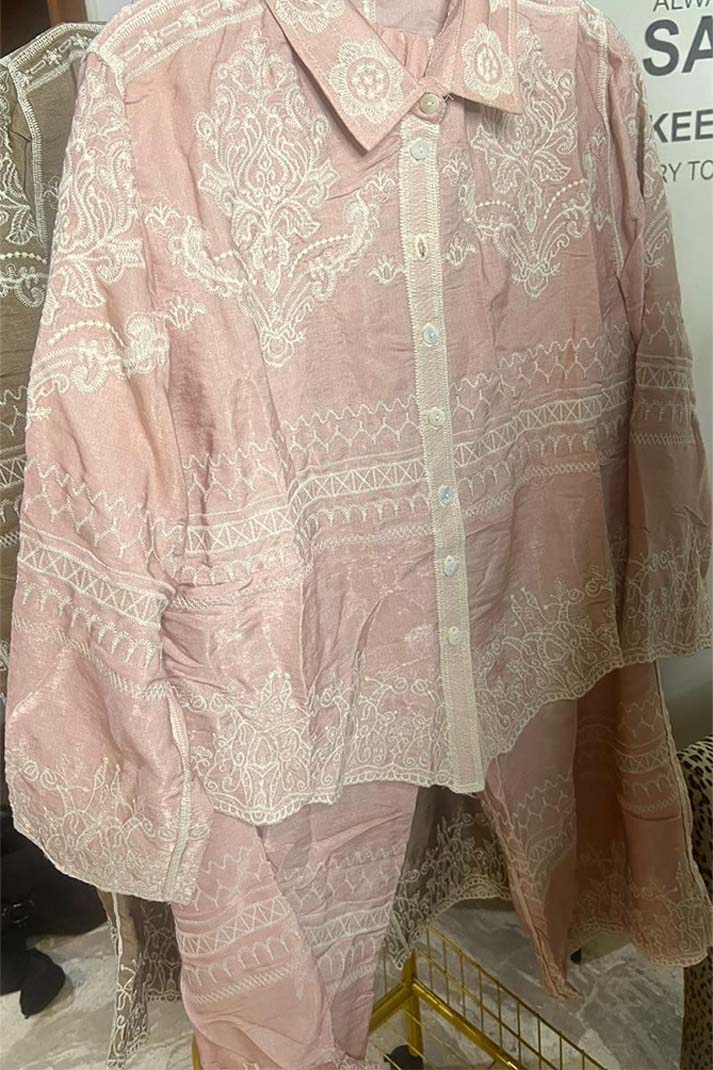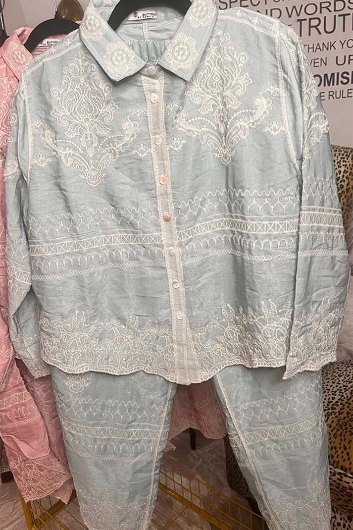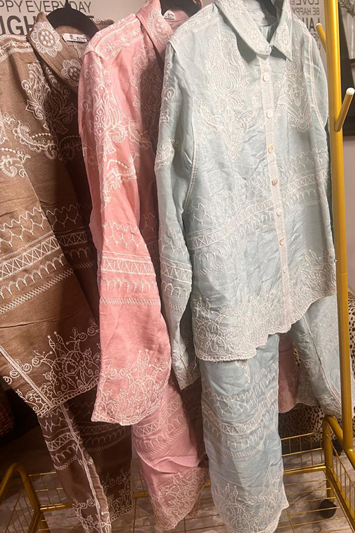 A graceful fusion of comfort and elegance, the Zariah Co-ord Set features a lightweight, breathable fabric adorned with intricate thread embroidery inspired by heritage craft. The shirt-style top comes with a structured collar, front button-down detailing, and delicately scalloped hems, while the relaxed straight pants mirror the same artisanal motifs — creating a harmonious set that’s both versatile and timeless.